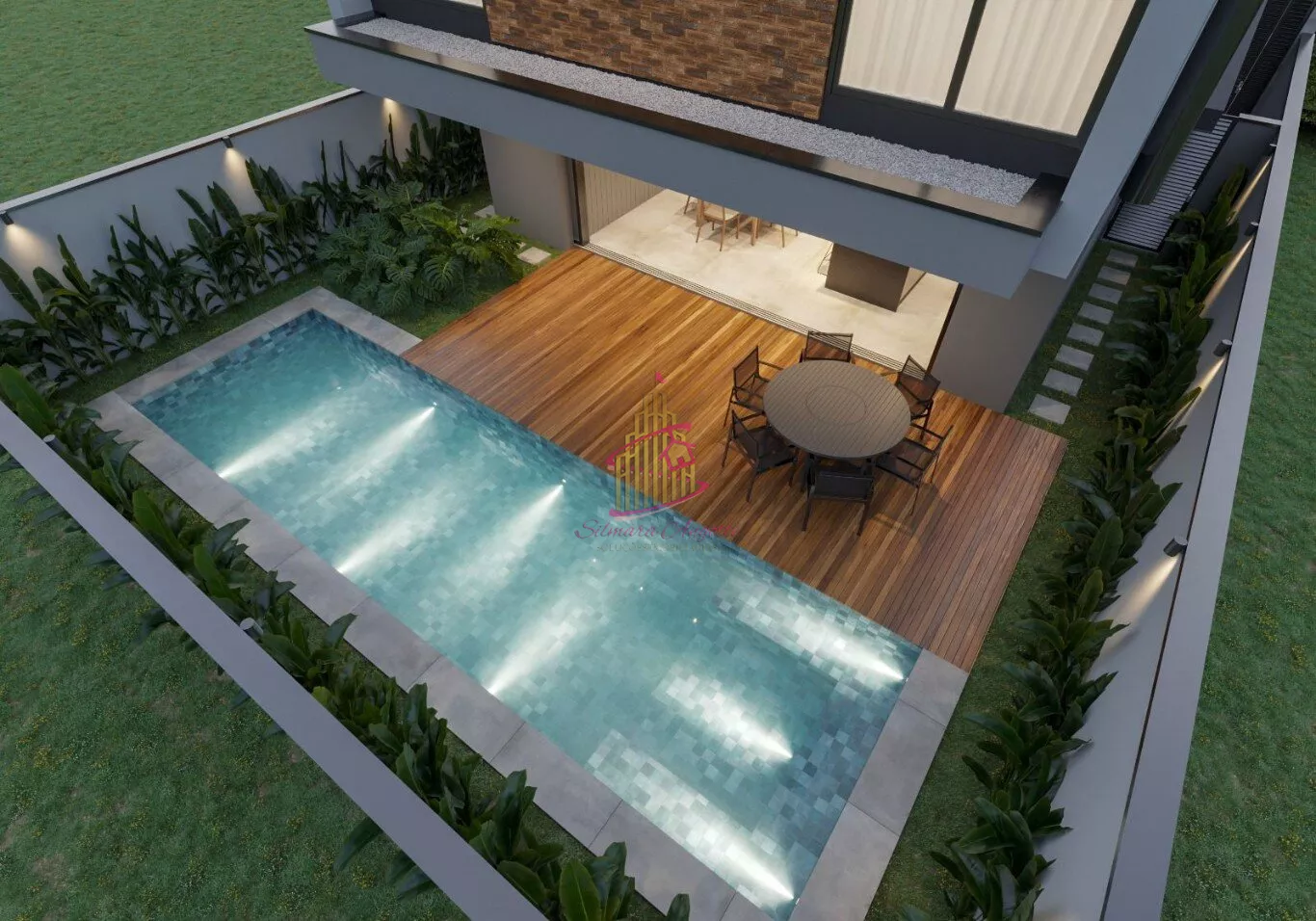 Área total de 290 m2 incluindo a piscina