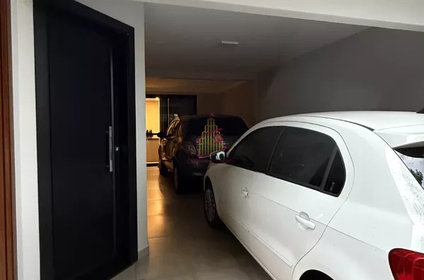 02 vagas de garagem cobertas podendo colocar mais um veículo na lateral da casa
