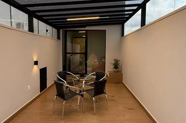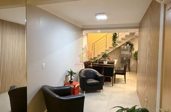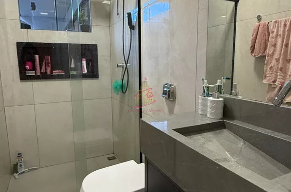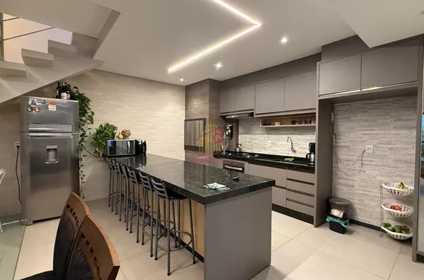 A casa é toda moderna tanto fachada quanto áreas internas ,muito iluminada , arejada, aconchegante e ficará todos os móveis planejados !