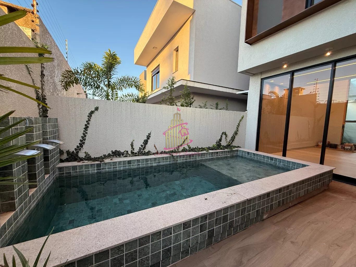 Piscina aquecida com cascata