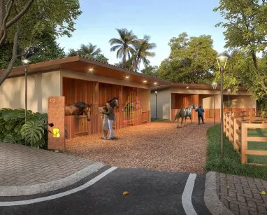 Um espaço rural dentro do projeto, com cavalos, ovelhas, pequenos animais, aves exóticas, laguinho e horta comunitária. Um verdadeiro convite ao contato com o campo e à vida simples com conforto.