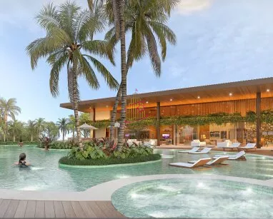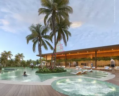 Parque aquático com piscina adulto e infantil, tobogã, ofurô, deck molhado, gazebos e solarium. Além disso, salão de festas, espaço gourmet, sala de jogos, espaço kids, beauty care, cozinha de apoio, academia, coworking, SPA, saunas seca e úmida.